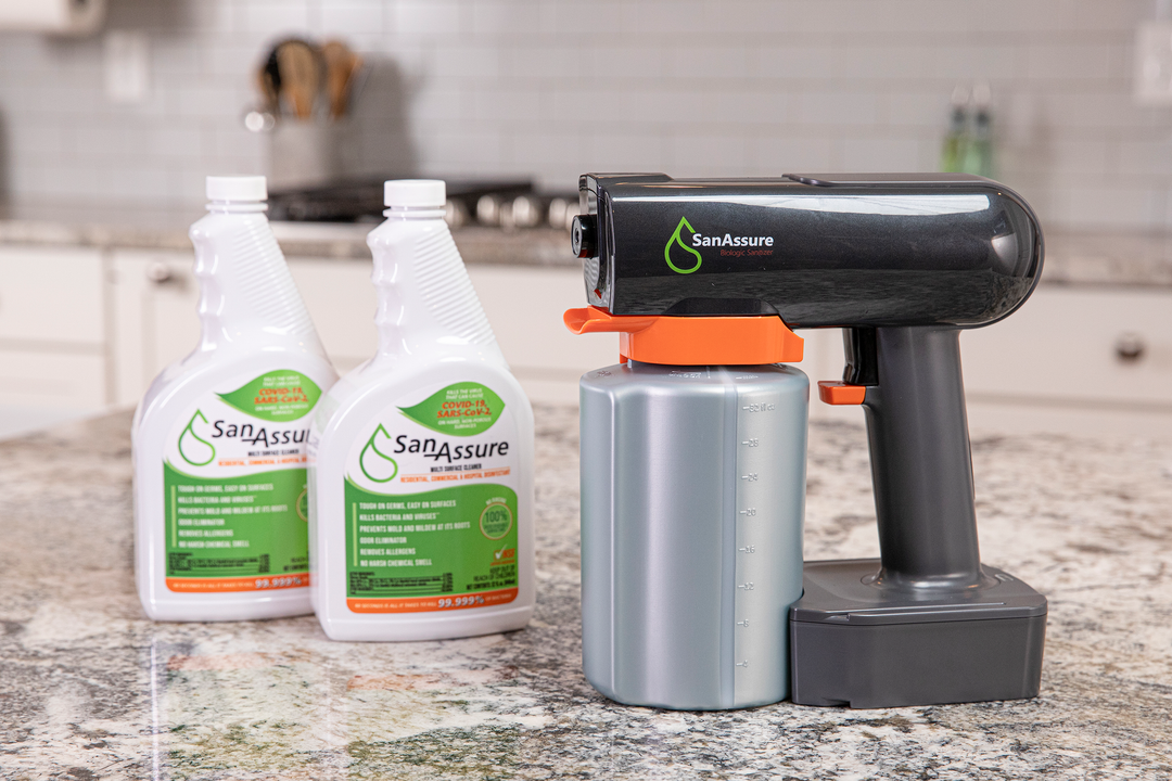San-Assure provides multi-surface cleaning solutions that allow you to disinfect and sanitize every surface in your home. Our EPA-Registered sanitizer is safe to use and our electrostatic attraction technology provide full coverage disinfecting.