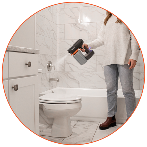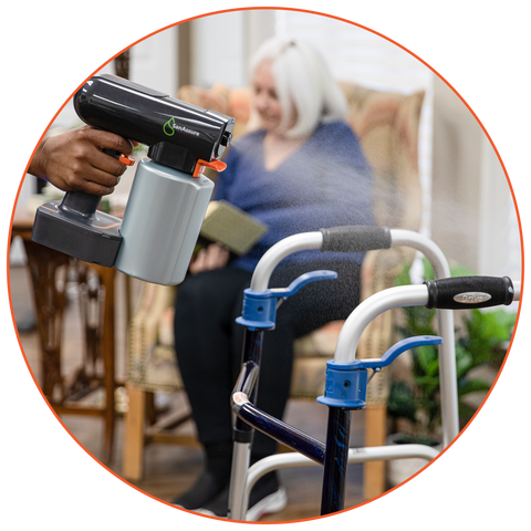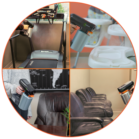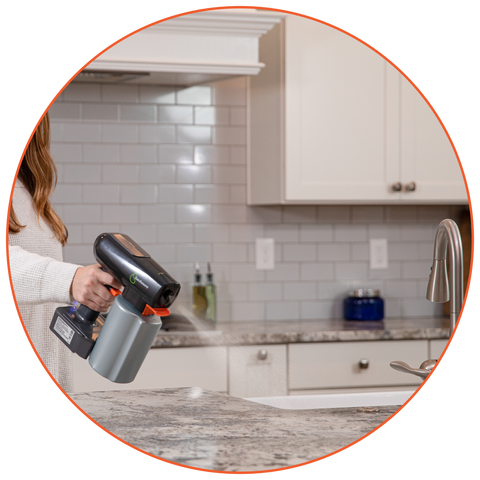 San-Assure's Electrostatic Sprayer utilizes an EPA-Registered Disinfectant to target bacteria, viruses, mold, mildew, odors and more. Our solution effectively sanitizes hard and soft surfaces while remaining safe to use around kids, pets and food. The sprayer enhances the process by providing full surface coverage through electrostatic attraction technology.