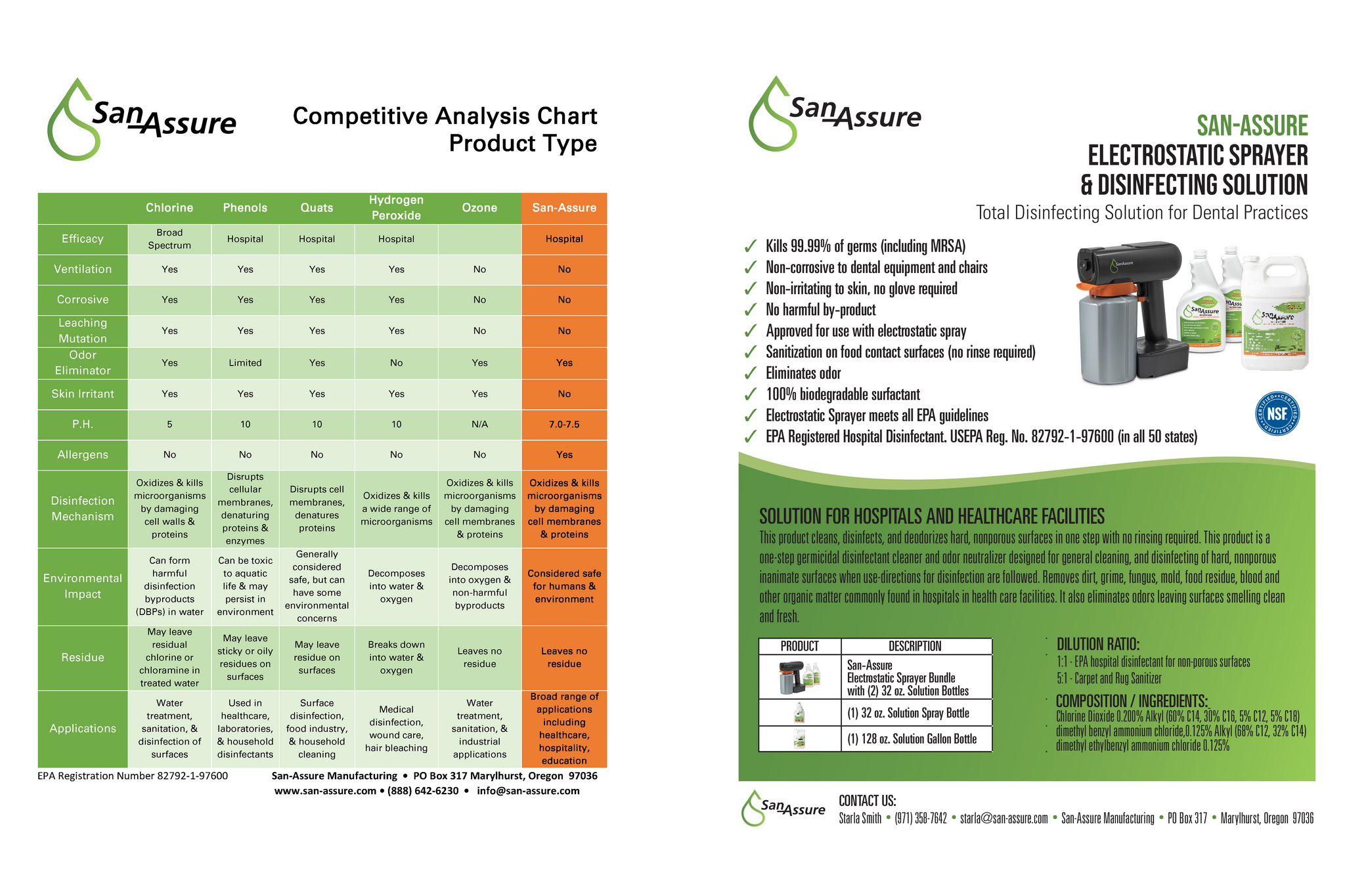In addition, San-Assure has been designated by NSF International as a “no rinse required” food-contact surface sanitizer, San-Assure is a versatile solution that can be used full-strength or diluted for multiple applications.
